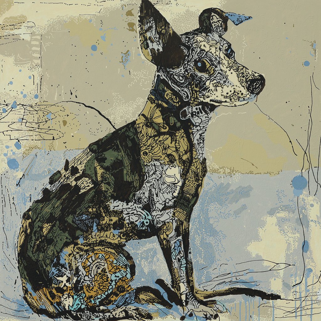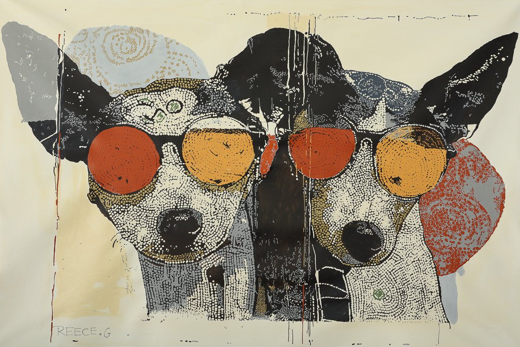 Raised with the stories of Martu Country, Reece paints works that bridge ancestral memory and contemporary fine art. His canvases hold both gravity and joy: elders rendered with quiet strength, animals painted with mischief and personality, and desert landscapes that echo with lived experience.